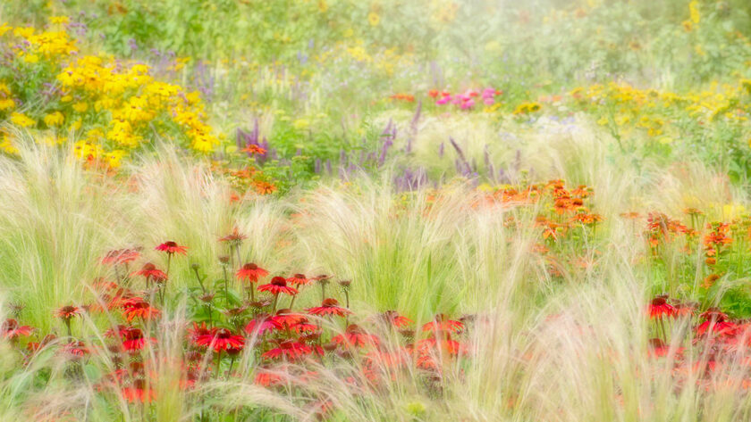 La foto premiada se titula Summer Reveire, un “ensueño de verano” en el que las flores de equináceas (Echinacea ‘Salsa Red’) aparecen como brillantes estrellas rojas dentro de una paleta de colores de verano en los jardines de Forest Lavender Farm, en Wiltshire, Inglaterra. Para lograr ese efecto mágico, capturó una doble exposición que le permitió suavizar las gramíneas y crear un evocador sueño botánico. Sin duda, lo logró.