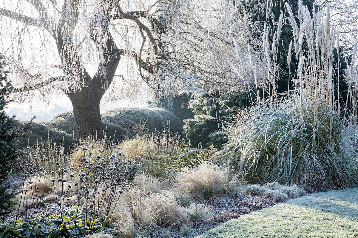 La magia del otoño y de la plantación de herbáceas perennes en un jardín privado de Surrey, Inglaterra se refleja en la maravillosa fotografía de Marianne Majerus. Ella misma nos lleva también hasta Jardín de St. Timothee, Berkshire, Inglaterra, donde capturó la luz de la mañana que iluminaba la extensa helada de largo alcance, que cubría las ramas de los árboles, las cabezas de semillas de Phlomis, así como los pastos de Cortaderia y Stipa por igual.