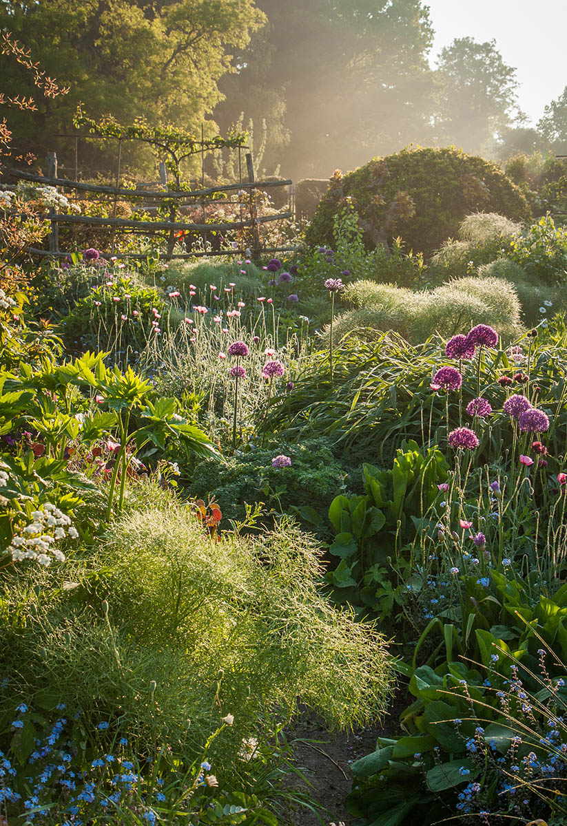 La foto ganadora está realizada por Nicky Flint en los jardines de Great Dixter, donde aprovechó la luz de la mañana en el llamado High Garden, capturando esa neblina suave que creaba una atmósfera mágica donde el rocío caía sobre el hinojo y las flores de Allium.