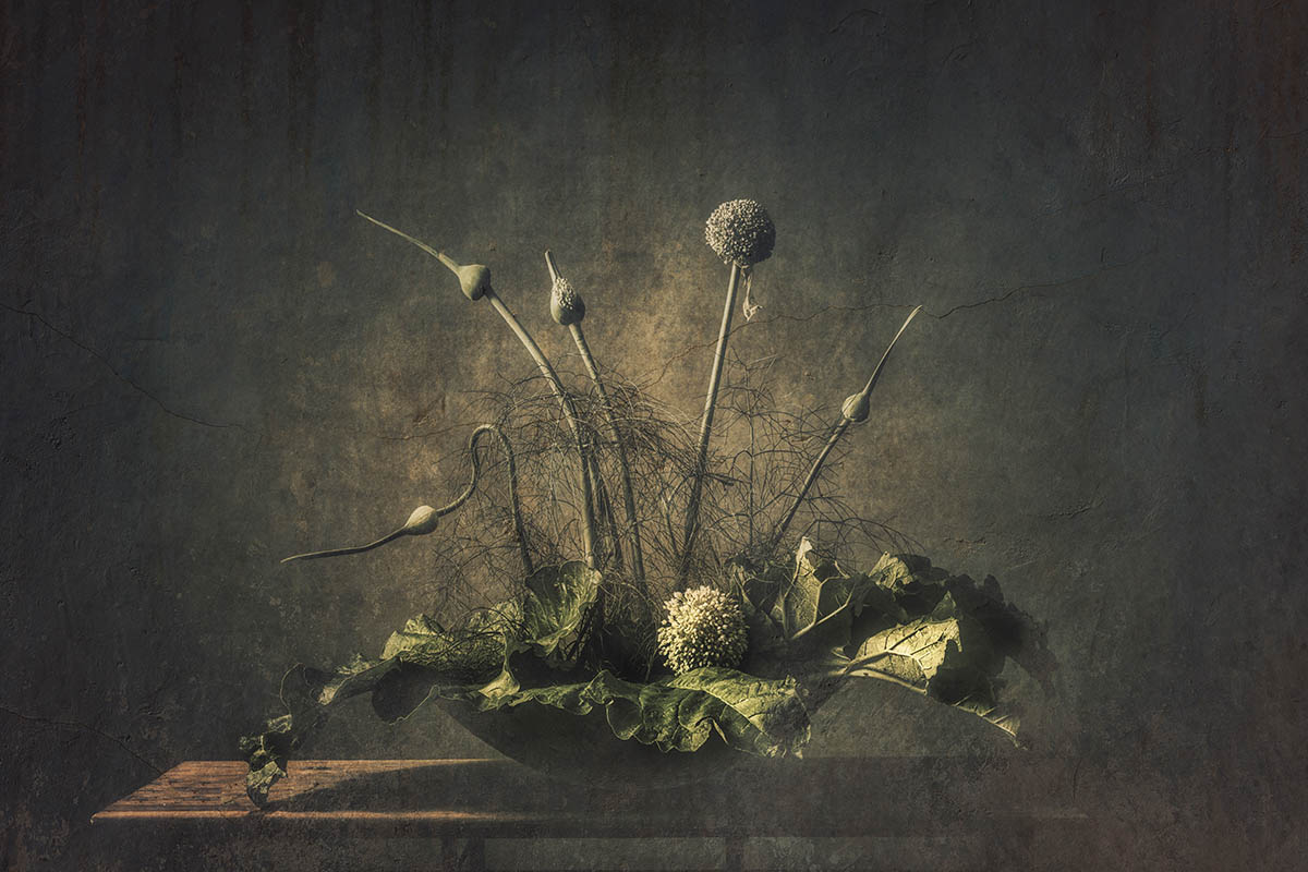 También hay fotografías de naturalezas muertas creadas con elementos cosechados del propio jardín de los fotógrafos, como es el caso de la fotografía que ha obtenido el segundo premio, realizada por el fotógrafo neozelandés Simon Schollum.