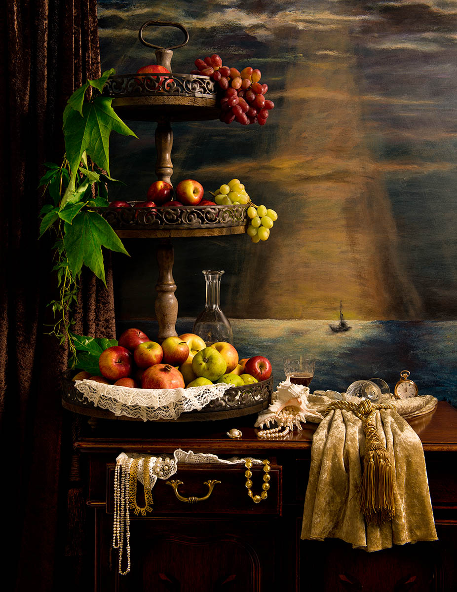 En esta ocasión hablamos de la categoría Still Life (Naturaleza Muerta o Bogegón). Como suelo decir al hablar de este apartado, las composiciones que crean como modelo son ya en sí una joya. Este año, la fotografía ganadora es un bodegón simbólico al estilo de las grandes pinturas de vanitas del siglo XVII. Frutas, verduras, hortalizas alguna que otra flor; cestas, manteles, jarrones y un sinfín de complementos se dan cita en estas extraordinarias fotografías que bien podrían estar colgadas en un museo.
