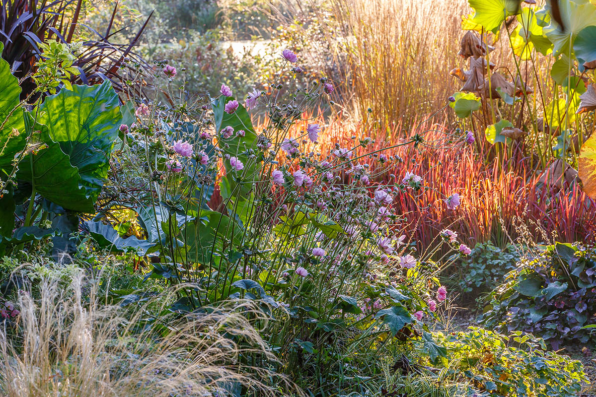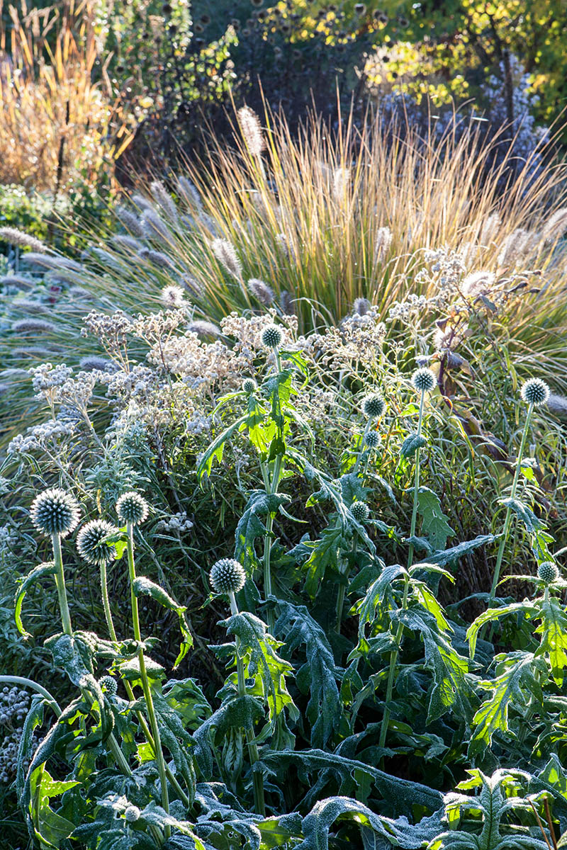 En Alemania, Manuela Göhnermuestra una escena en el Jardín Tachenhausen, ubicado en la Universidad de Ciencias Aplicadas de Nürtingen-Geislingen. En la fotografía captura formas y texturas de Echinops, Anaphalis y Pennisetum cuya belleza la acentúan las heladas de una de las primeras mañanas frías del año. Además, en un jardín situado en Baden-Wurtemberg, uno de los dieciséis estados federados de Alemania, ha capturado la esencia del verano en el jardín con una fotografía de una bordura de herbáceas “bañada por la cálida luz del sol de la tarde”.