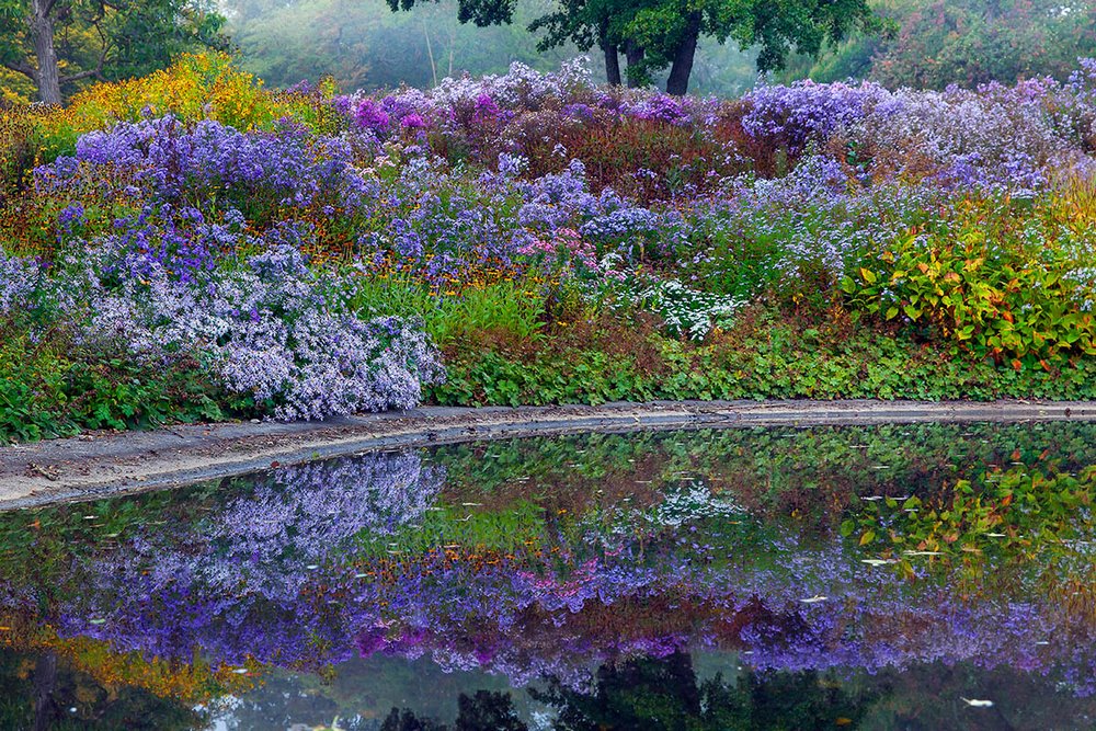 También en Alemania, en esta ocasión en Killesberg Park, Stuttgart, el fotógrafo alemán Martin Staffler capturó en una mañana brumosa una espectacular bordura de herbáceas reflejada en el estanque, una fotografía que ha resultado finalista. Las tonalidades azules las proporcionan diferentes variedades de Aster en otoño combinadas con especies de Rudbeckia , Alchemilla y Bistorta. En ese mismo parque realizó otra fotografía que ha sido elogiada; así como la que realizó en primavera en los Jardines Herrenmühle Bleichheim de Baden-Wurtemberg, donde muestra un camino de grava con su exuberante plantación de especies de Iris , Salvia y Aquilegia.