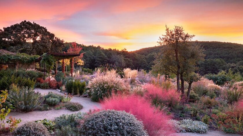 Capturar un amanecer otoñal es siempre un objeto de deseo para cualquier fotógrafo. Si se trata de un jardín, el cromatismo que ofrece la plantación se convierte en un plus. Si la foto la realiza un buen profesional nos acercamos más al éxito, y la belleza está garantizada.