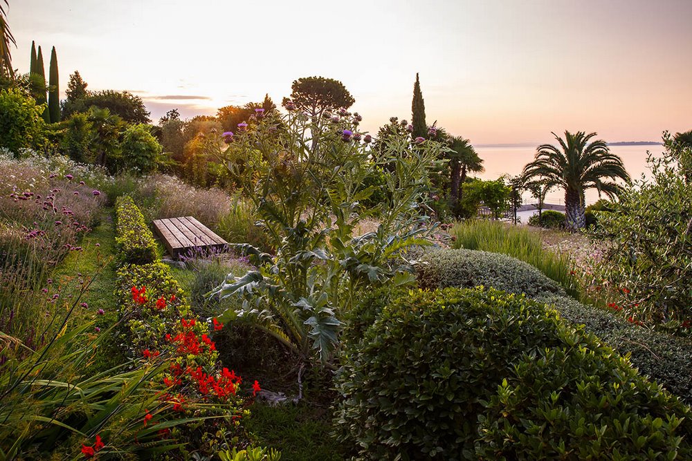 Volviendo a la península italiana, mi querida y extraordinaria fotógrafa Rosanna Castrini nos regala la mágica luz del amanecer que baña un jardín diseñado por la arquitecta paisajista alemana Anita Fischer, un jardín que ofrece extraordinarias vistas al majestuoso lago de Garda en el norte de Italia. Ese cálido resplandor sobre el lago lo ha capturado con la magia que suelen desprender las fotografías de Rosanna, quien han recibido premios y reconocimientos en varias convocatorias de IGPOTY. No olvidemos que fue ganadora absoluta en la edición 12. Ver: Rosanna Castrini. International Garden Photographer