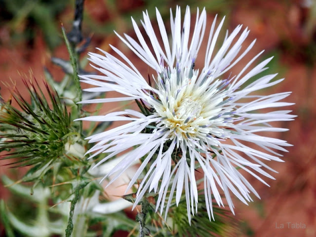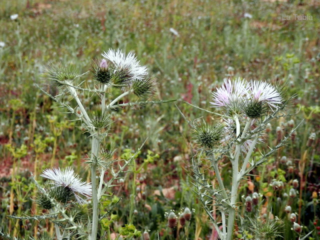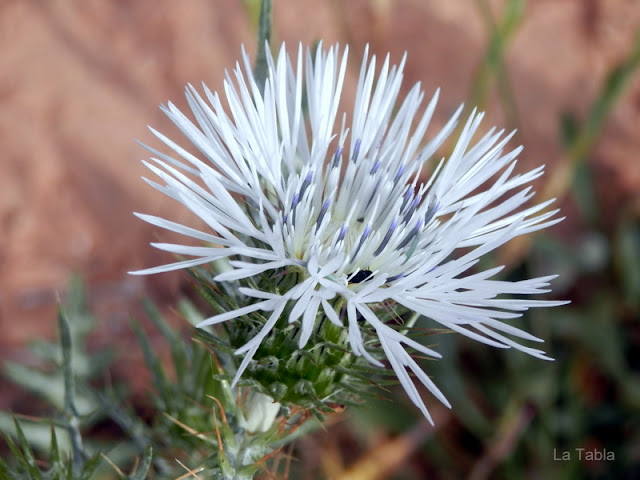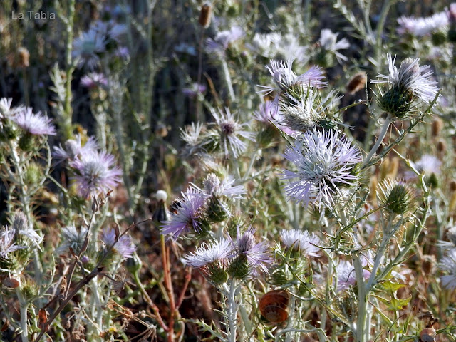Desde el nivel del mar hasta la montaña podemos encontrar este cardo blanco,Galactites tomentosa Moench, por todo el Mediterráneo, donde se pueden apreciar sus flores, de color amatista con toque blanco, increíblemente fotogénicas y que parecen querer brillar con luz propia.