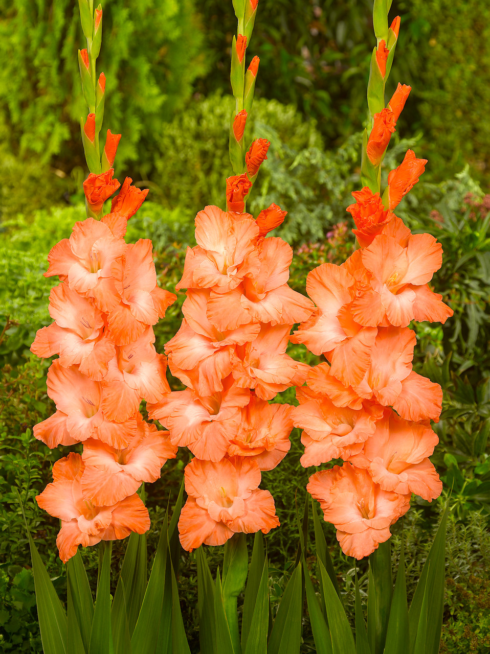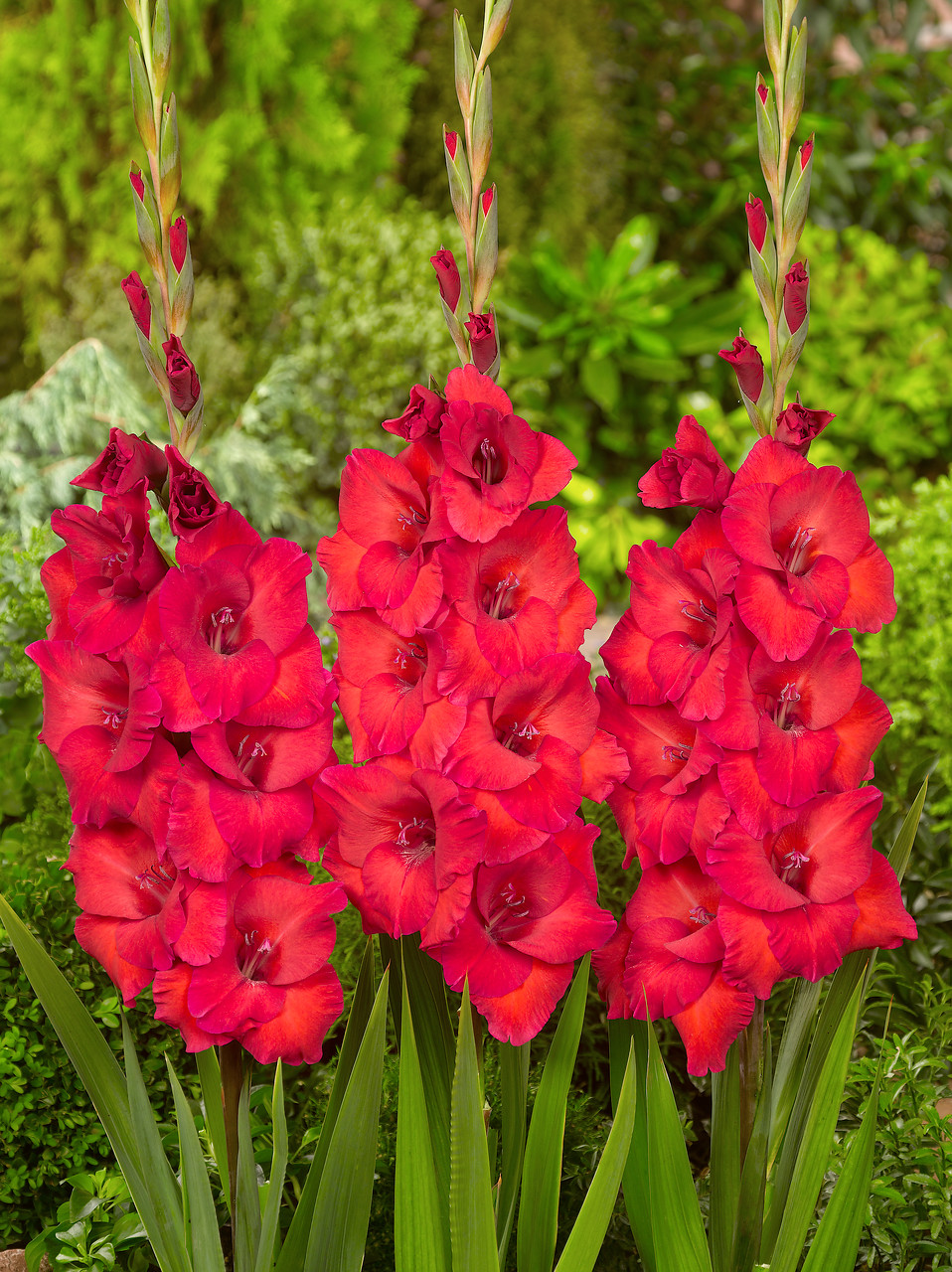 Los gladiolos se incluyen dentro del grupo de bulbos que florecen en verano.Los cormos se deben plantar en primavera (una vez que el riesgo de heladas ha desaparecido) a una profundidad de 10 cm.