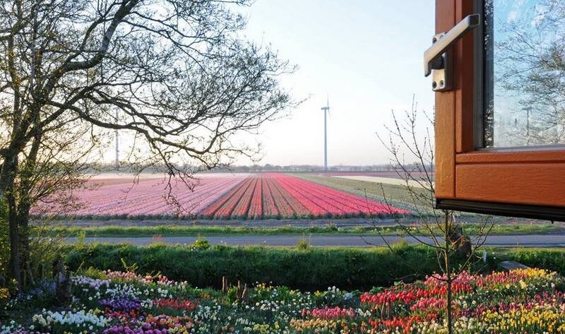 Grandes promesas tiene que ofrecer una ventana que muestra los campos de bulbos en flor, de tal modo que se convierten en un auténtico espectáculo. Casi podría decirse que son vistas a Keukenhof, pero, aunque estamos hablando de los Países Bajos, no estamos en Keukenhof, sino en una casa de campo de 150 años, donde vive Carlos van der Veek , experto en el cultivo de bulbos de flor. Apasionado, habría que decir. Y no solo son los campos de cultivo que explota para su comercialización, sino también la exclusiva colección de bulbos de flores que rodean su casa. Decidió residir cerca del trabajo o trabajar cerca de casa, no importa el orden, porque el resultado es el mismo: vive de acuerdo a las estaciones y disfruta con las vistas cuando quiere darse un respiro.