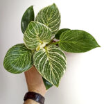 Las hojas, de color verde con venas rosadas, son elípticas a elíptico-lanceoladas, de hasta 23 centímetros de longitud, dispuestas en verticilos de 3 o 4 hojas por nudo. Están cubiertas de tomento (pelos) rojo cuando son jóvenes y moteadas de un atractivo rojo o púrpura en la madurez. Además, permanecen en el arbusto durante el invierno, por lo que la planta puede mantenerse vistosa durante todo el año.