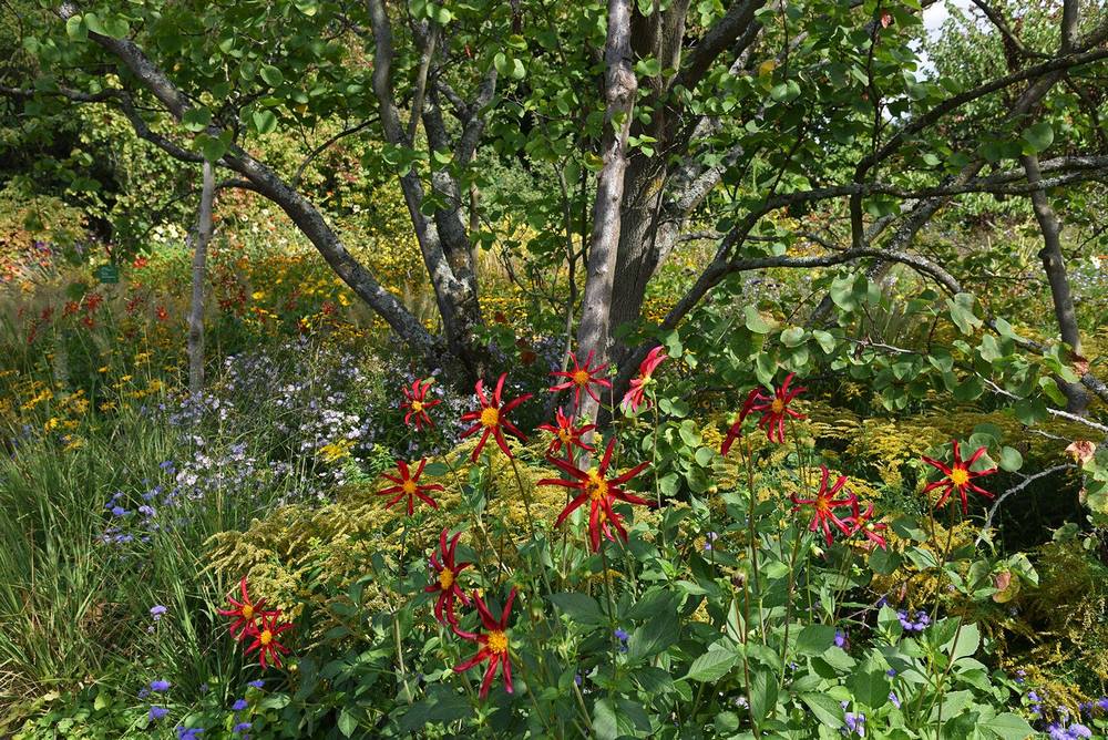 Es marca de la casa la mezcla dinámica de plantas herbáceas perennes y gramíneas ornamentales que se presentan en el jardín ordenadas por hábitat y origen (bosques, praderas, estepas, bordes de estanques, praderas secas). El efecto final es un caleidoscopio para todas las estaciones que está inspirado en la naturaleza, pero sin replicarla.