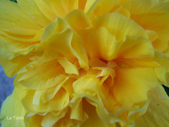 El amarillo es el color que evoca la luz. También se dice que, de todo el espectro, es el color que mayor sensación de optimismo y felicidad transmite. Pues eso. Hoy quería traer eso por partida doble y he elegido uno de los hibiscus amarillos que llenan de luz el jardín. El guapo hibiscus Koeniger, un hibiscus rosa-sinensis de flor doble y crecimiento compacto.