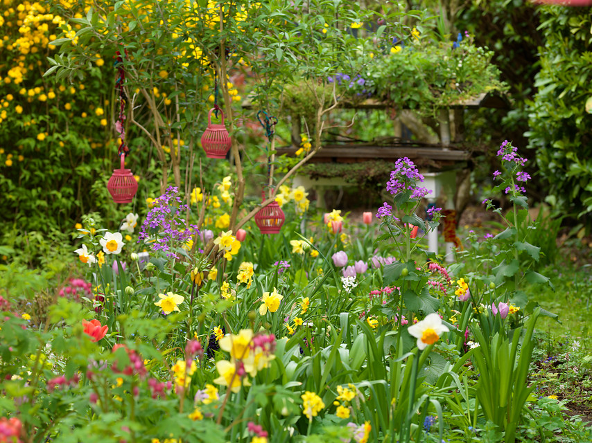 Algunos de los bulbos que plantamos en otoño ya están floreciendo desde hace un mes. Poco a poco lo van haciendo otros, como tulipanes y fritillarias y, más tarde, siempre más rezagados, los alliums estarán también en flor. Hay vivaces que ya despiertan y anuales que llegan con fuerza. Árboles que exhiben coloridas flores y arbustos que brillan y florean también.