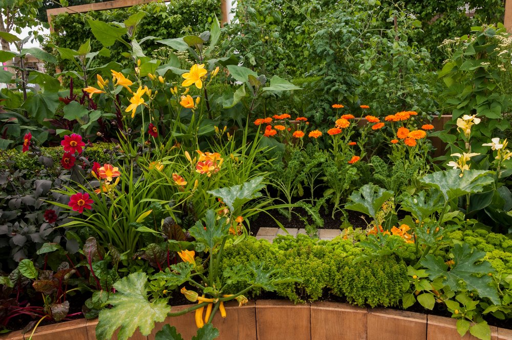 caléndulas, col rizada, capuchinas, lirios, hierbas y dalias | Foto © RHS/Tim Sandall