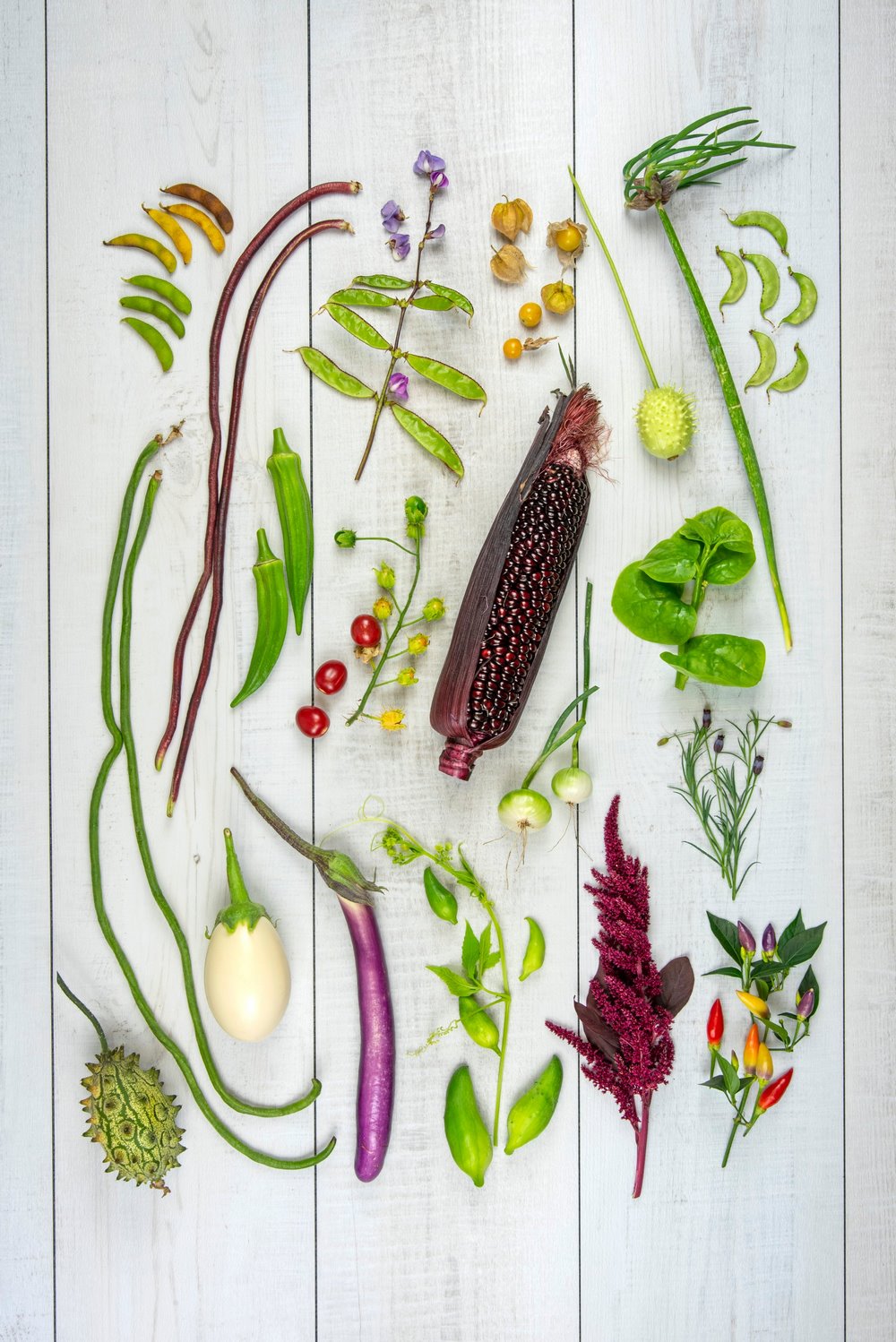 Se acerca el otoño, de modo que algunas de los cultivos que destacarán en este huerto en los próximos meses hacen referencia a las populares calabazas; el yacón (Smallanthus sonchifolius), un tubérculo cultivado en zonas cálidas y templadas de la Cordillera de los Andes por su textura crujiente y sabor dulce propio; las batatas, variedades de pulpa rojiza o amarillente de Ipomoea batatas, y el boniato o camote, las de carne más clara; la oca, papa oca o ibia (Oxalis tuberosa), una planta que se cultiva en la puna de los Andes centrales y meridionales por su tubérculo dulce comestible; y, cómo no, los chiles (Capsicum annuum).