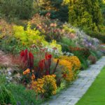 Hydrange arborescens ‘Annabelle’, Sedum Telephium ‘Matrona’ y Anemanthele lessoniana en otoño | Foto © Clive Nichols
