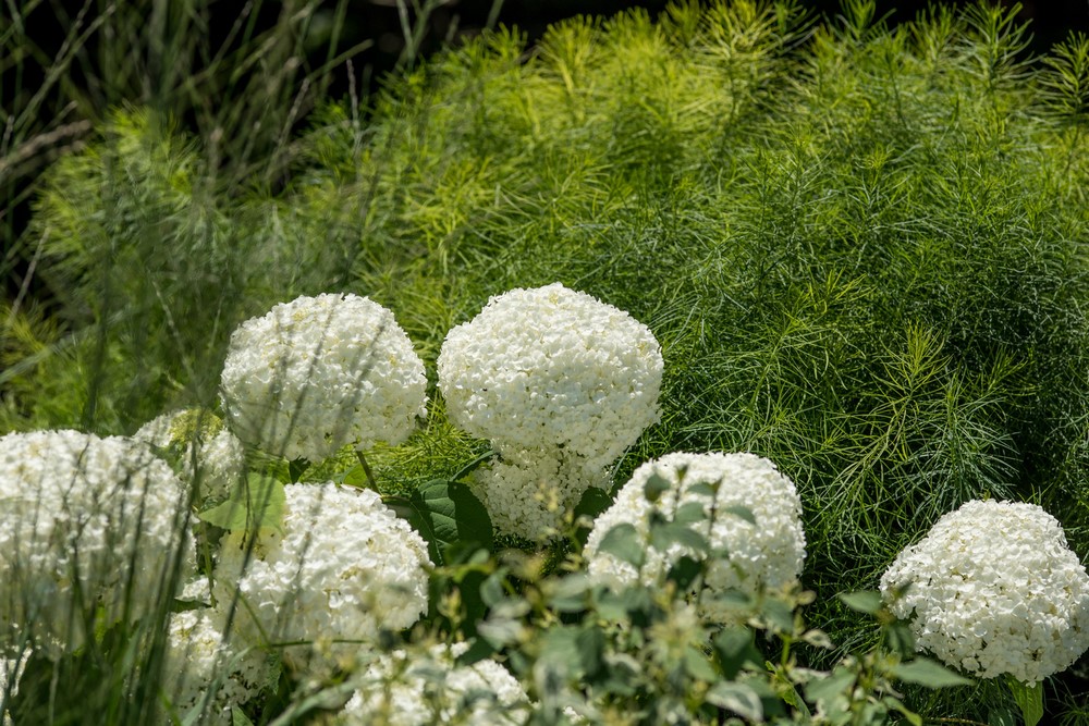 Se puede utilizar para hacer masa o como ejemplar de acento en el jardín. Después de que las flores de Hydrangea arborescens se desvanecen, se convierten en una excelente opción para arreglos con flores secas.