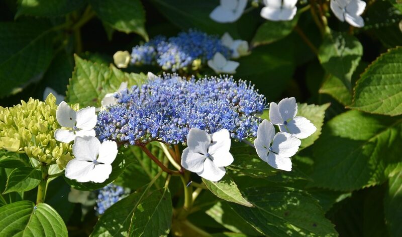 Pasear por una carretera local, escuchando a lo lejos el sonido de las olas del mar y encontrarse con un seto vivo de hortensias en el camino es todo un lujo. Pero, en esta ocasión, al caminar junto a ese seto poblado con la más popular de las hortensias, Hydrangea macrophylla, pude apreciar la belleza de las incipientes y abundantes inflorescencias de otra especie dentro del género Hydrangea: Hydrangea serrata ‘Bluebird’. Una maravilla.