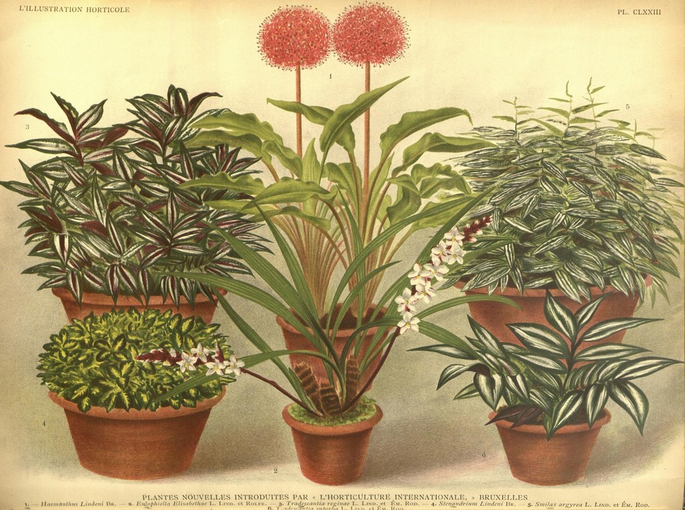 Durante las más de cuatro décadas de L’Illustración Horticola se publicaron numerosas especies de orquídeas, arecas, aráceas, bromelias, crásulas, cactus, ágaves, drácenas, yucas, begonias, euforbias y amarilis, entre otras muchas.
