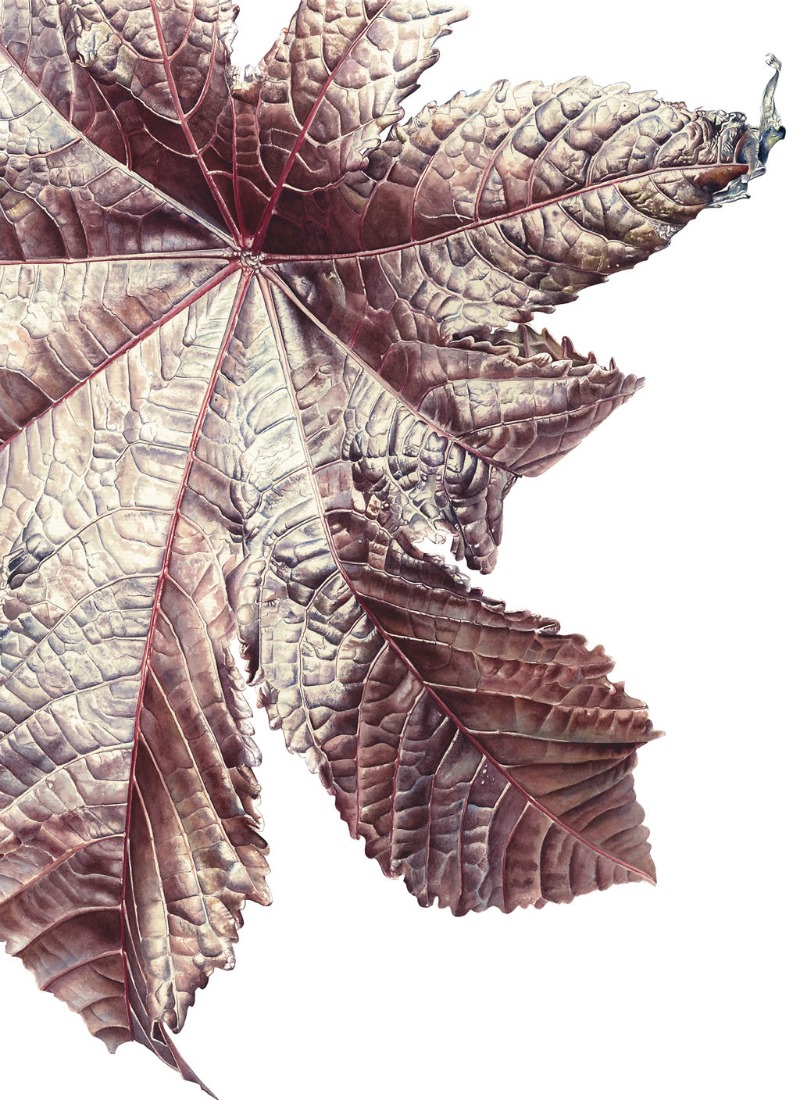 Quienes seguimos de cerca el trabajo de Inky Leaves, sabemos que en los últimos tres años sus ilustraciones han estado dominadas por tonos de verde, obras recogidas en la serie Leafscape. Una colección basada en hojas, la mayoría de ellas encontradas en su jardín y en las calles de Londres. En ocasiones, también encuentra material en los jardines botánicos.