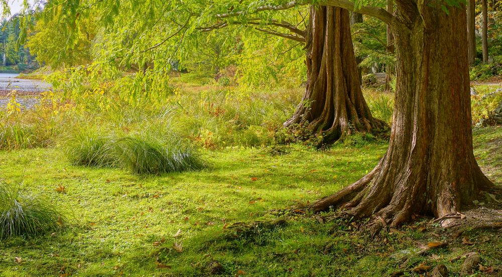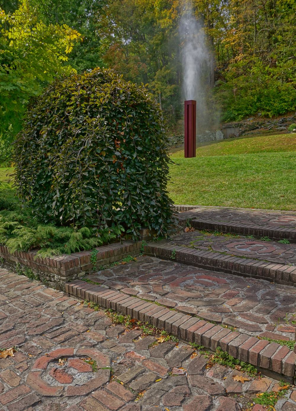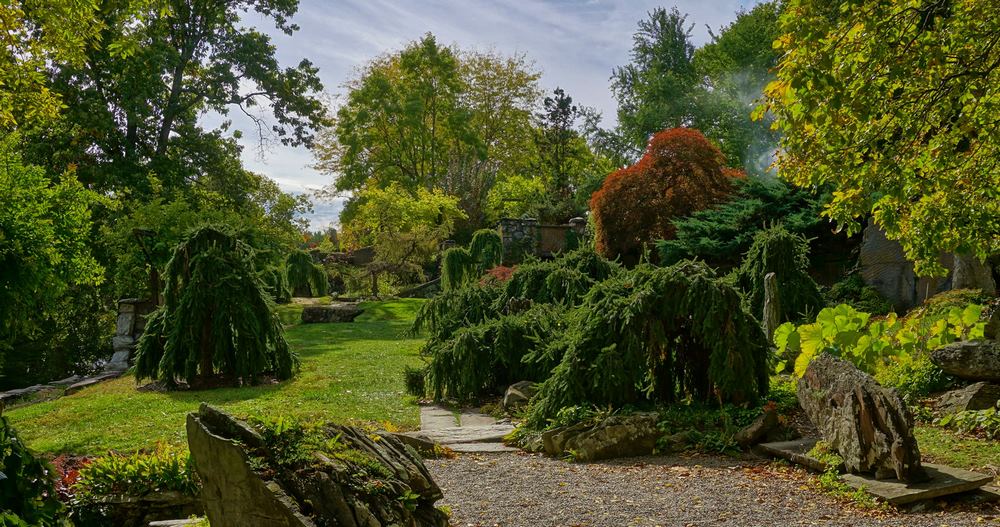 Se crearon arroyos, cascadas, terrazas, muros de contención y rocas que provienen del bosque local. La selección de plantas se hizo en función de su capacidad de prosperan allí donde se implantaban. La mayoría son especies nativas, lo que ha contribuido también a integrar ese paisaje creado con técnicas de diseño de inspiración oriental en su entorno natural norteamericano.