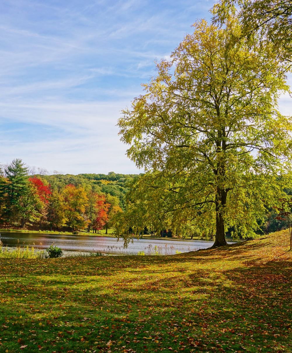 El entorno natural del jardín está definido por Tyrrell Lake —un tranquilo lago glacial de 16 hectáreas situado en el centro del sitio — y las colinas boscosas que lo rodean.