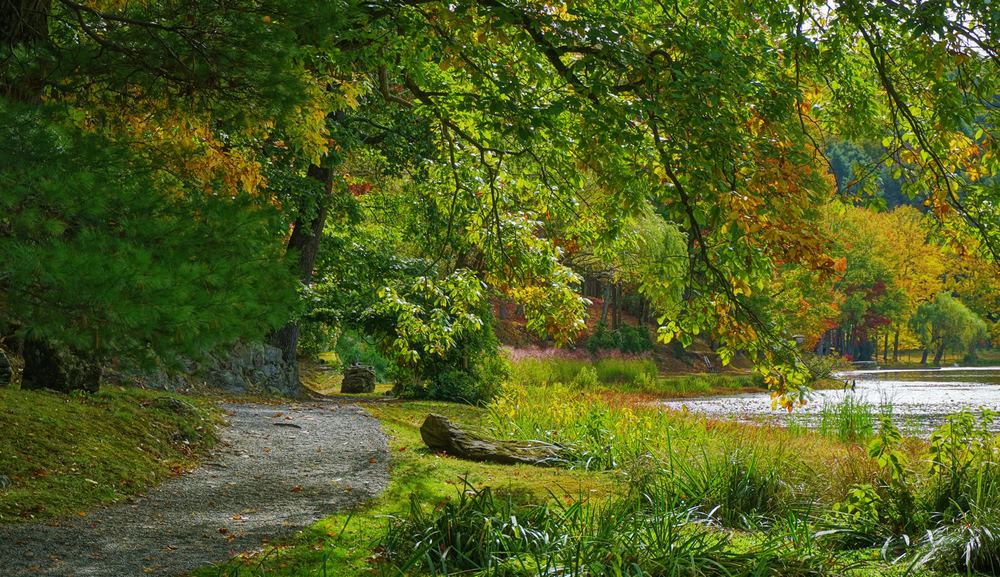 Innisfree Garden es un jardín paisajista inspirado en los principios del diseño de los jardines tradicionales orientales. No es un paisaje para contemplar como un todo, sino que está integrado por pequeños espacios que forman parte de un paisaje naturalista más amplio y que hay que ir descubriendo a medida que se pasea por diferentes senderos.