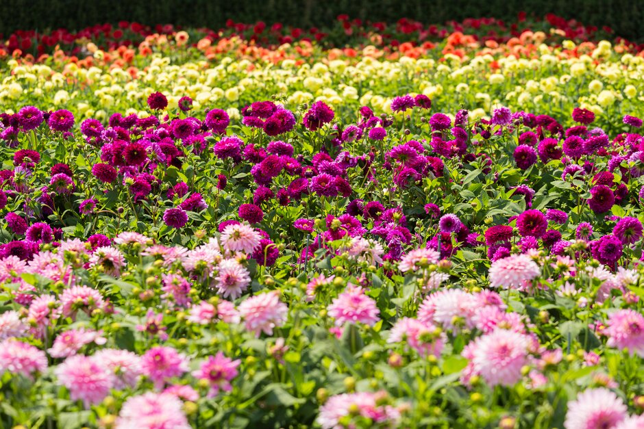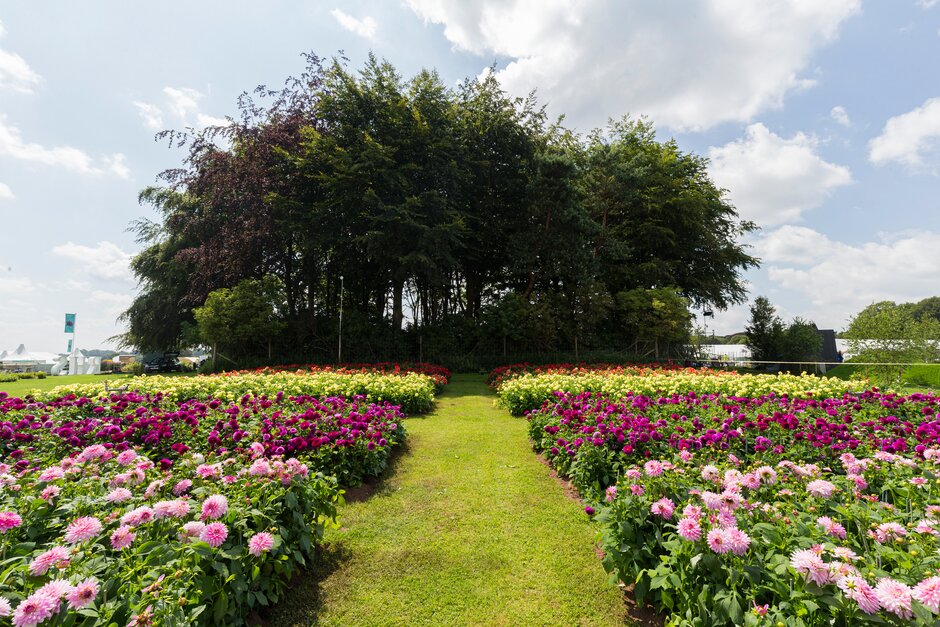 Si el año pasado una pradera con plantación en masa de rudbeckias(Rudbeckia hirta ‘Praire Sun’) llamaba la atención, este año las protagonistas son las dalias, concretamente 5.000 dalias que incluyen las variedades Dahlia‘Topia’, ‘Castillo’ y ‘Salinas’.