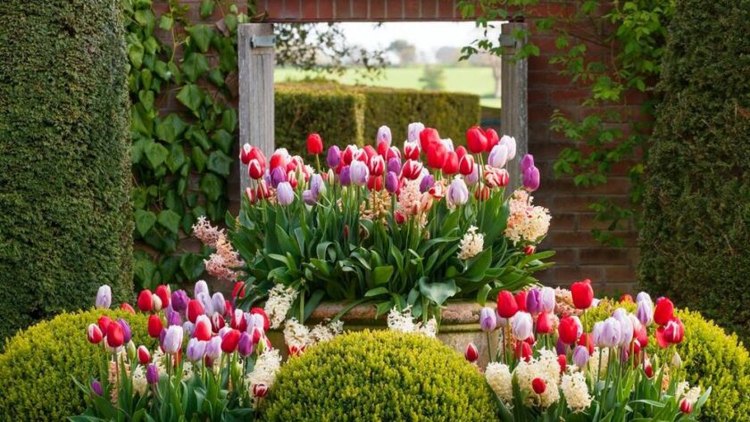 Si queremos combinar los bulbos de tulipanes con otras plantas, podemos hacerlo con otros bulbos que florecen en primavera, especialmente los de floración temprana, para obtener una larga sucesión de flores. Las flores de Muscari, narcisos y fritillarias son buenas aliadas de los tulipanes si queremos crear nuestro particular jardín en maceta.