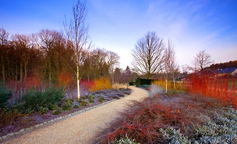 Apacibles bosques, prados, jardines de flores silvestres y siete jardines históricos. Plantas herbáceas, de rocalla o alpinas. Y, por supuesto, en invierno, la belleza no desaparece. En Febrero han elegido como planta del mes la Sarcococca hookeriana var. digyna ‘Stem Purple’.
