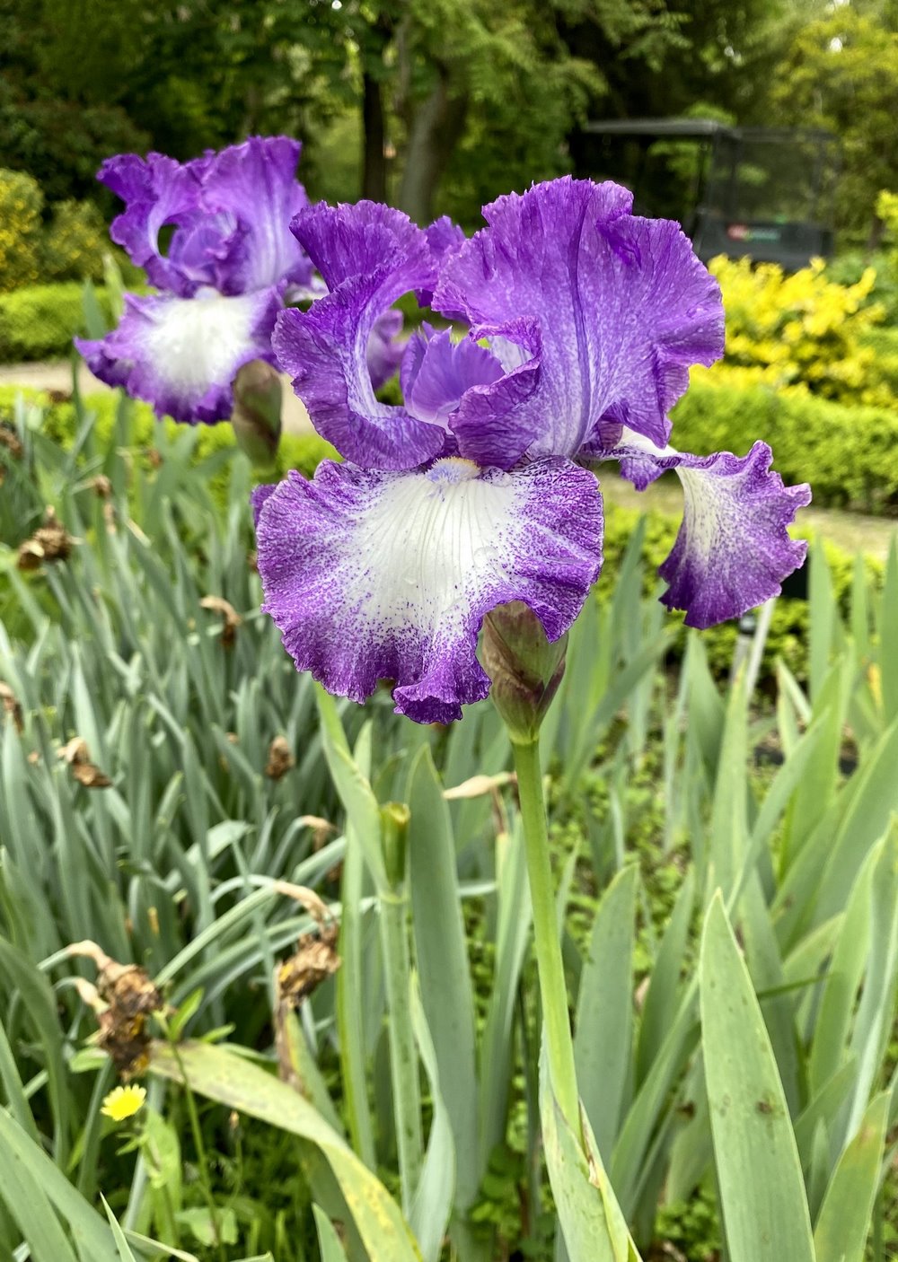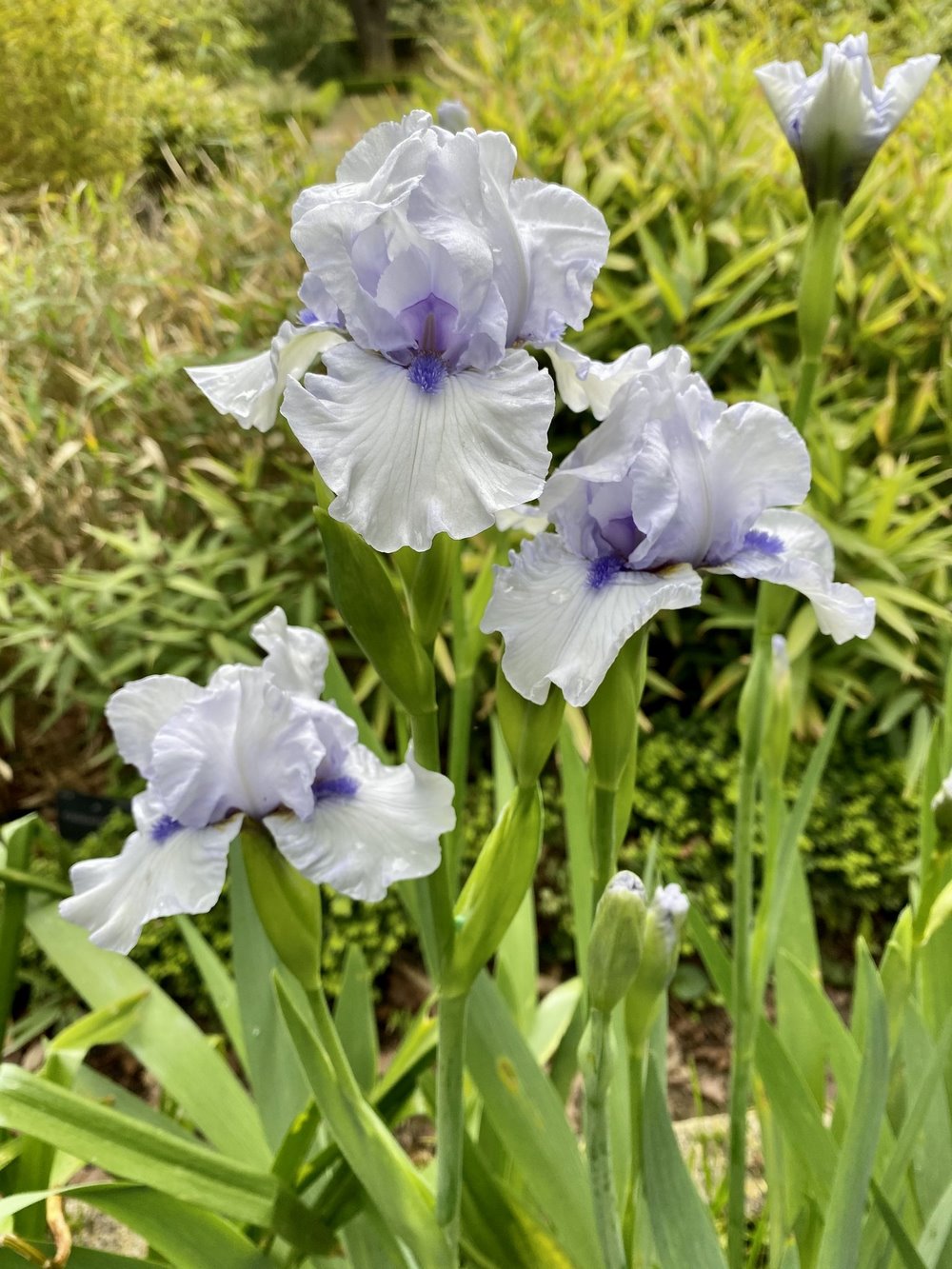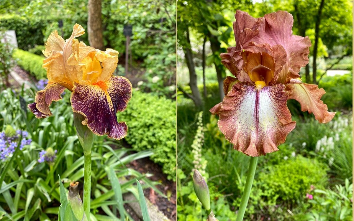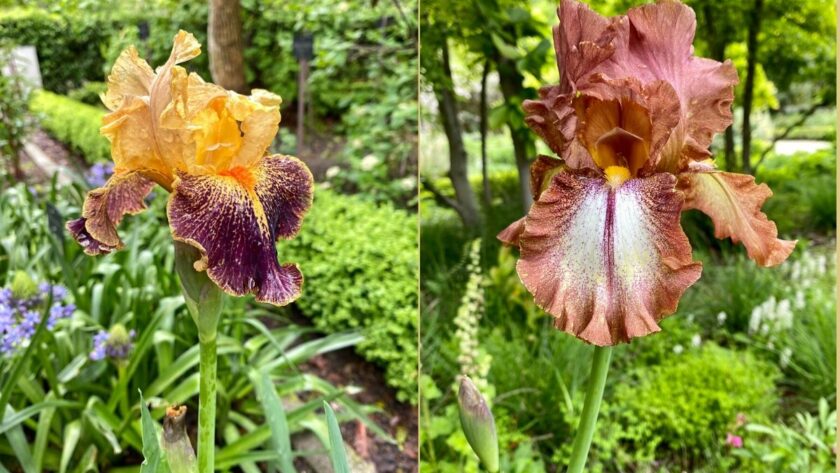 De este modo, en las fotografías vamos a ver lirios que incluyen tipos intermedios, que hacen referencia a flores un poco más cortas que las de los iris barbados altos, pero que resultan igualmente coloridos y vistosos en las borduras. También encontraremos cultivares con flores de un solo color o bicolores, con tonalidades más o menos brillantes, diferentes patrones en los pétalos e intensidad de perfume variada. Por la época en la que nos encontramos, los lirios que han podido mostrar hasta ahora corresponden a grupos de floración muy temprana, temprana o de temporada media.