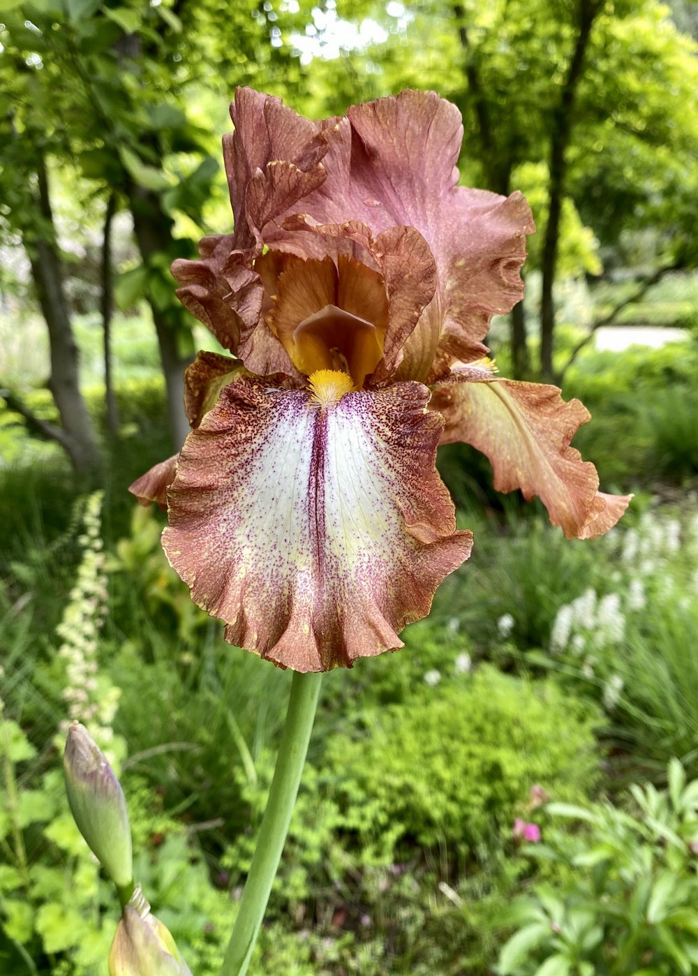 Iris ‘Spice Lord’. Flor rizada. Floración media. Altura 91 (Iris barbado alto) | Foto Gerardo Torres – RJB-CSIC