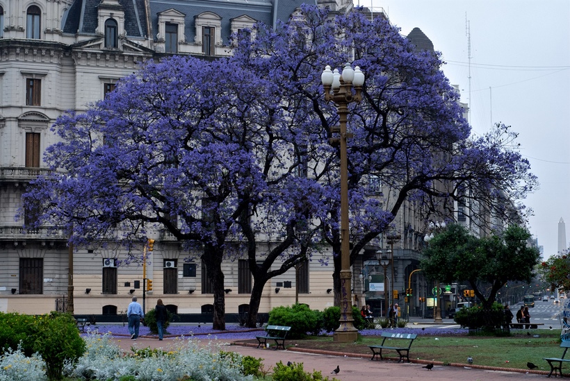 Pero si hay una ciudad donde los jacarandás son realmente apreciados es en Buenos Aires.  Los barrios en los que hay más ejemplares son Palermo, Recoleta y Belgrano, y pueden verse en cantidad a lo largo de las avenidas Del Libertador, Cabildo y Figueroa Alcorta. No es una especie autóctona de esa zona del país (sí lo es del norte del Argentina), pero los introdujeron con interés paisajístico, para lo que seleccionaron individuos resistentes al frío, que era el principal hándicap con el que se iban a enfrentar en esa región.