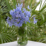 El sello inconfundible “Jekyll” lo aportan plantas de follaje gris, que incluyen cientos de Stachys byzantina y Sedum telephium, que se mezclaron con campánulas, rudbeckias, guisantes de olor, centaureas, delfinios y otras especies con flores azul y blanco.