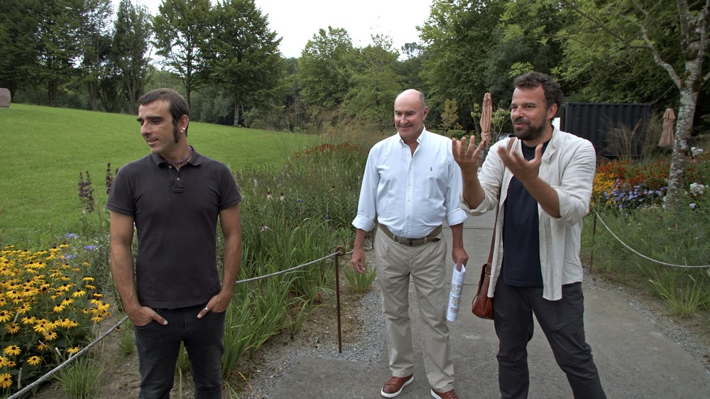 | El Jardinero Ibán Simón y el paisajista Álvaro de la Rosa con Arturo Franco en el jardín de Piet Oudolf | Foto © Time Zone |