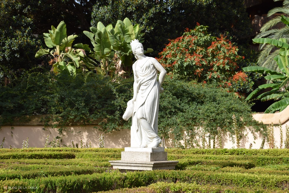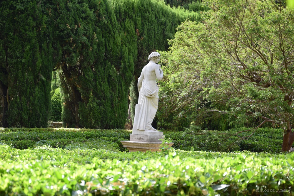 Imposible no destacar las 33 esculturas clásicas que nos conectan con las raíces simbólicas del jardín. Realizadas en mármol de Carrara, el blanco impoluto de las estatuas crea un extraordinario contraste con la vegetación arquitectónica.