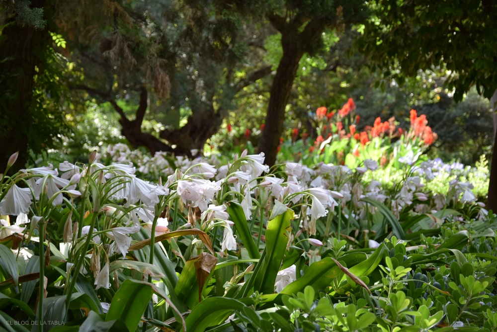 Ya comenté en su día al hablar del Jardín de Monforte que cuando lo visitas siempre tienes la sensación de que has descubierto un jardín secreto. Entre edificios modernos, al aproximarte a él se hace más fuerte esa sensación de que algo bueno te va a suceder. Y es así, siempre es así. Al acceder desde la entrada al palacete, te estalla en la cara un inmenso jardín que no es el más grande del mundo, pero sí, uno de los más acogedores y bellos que se puedan visitar. Es cálido, íntimo, hermoso y exuberante a la vez. Es un jardín para esconderse y disfrutar.