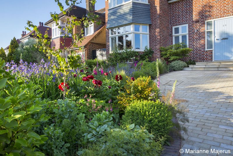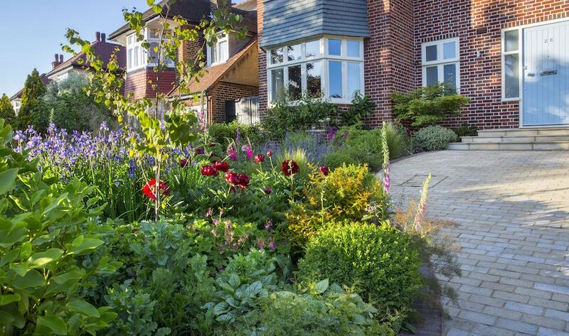 Cuando se tiene la posibilidad de dar la bienvenida a casa con un pequeño (o no tan pequeño) jardín delantero en cualquier ciudad, es un privilegio que conviene saber gestionar. El ejemplo que muestro hoy nos lleva hasta East Finchley, en Londres, y las fotografías parecen demostrar que es posible dejar sitio para aparcar el coche sin renunciar por ello a un pequeño jardín urbano.