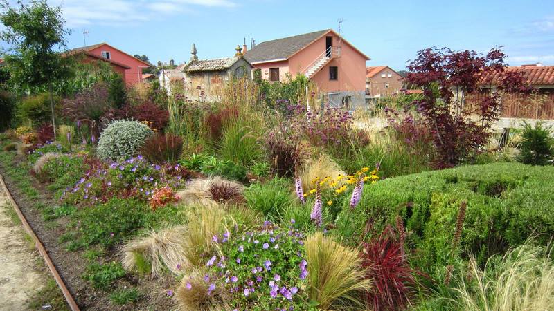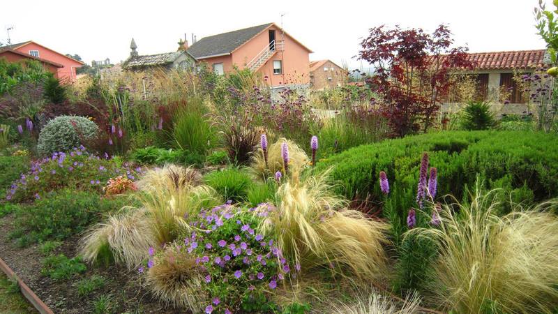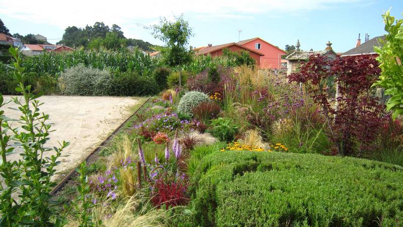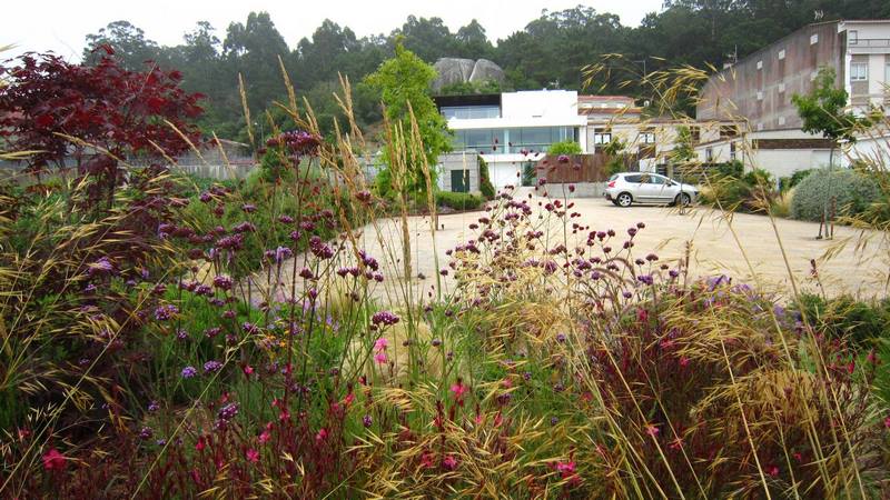 Con unas condiciones de pleno sol y viento bastante habitual, Anxo propuso hacer un jardín de apariencia campestre y un esquema de plantación que incluía numerosas especies que le aportarían un estilo naturalista.