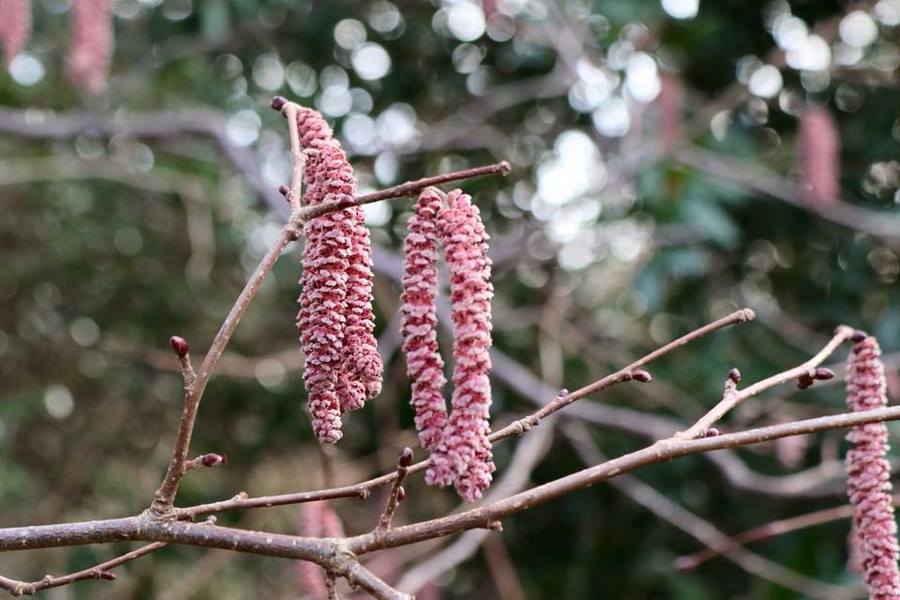 Amentos de Corylus avellana ‘Atropurpurea’ •• Anglesey Abbey