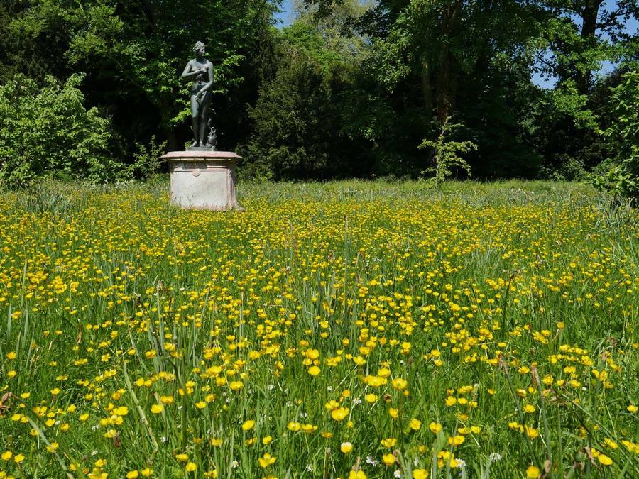 Los jardines se diseñaron para ofrecer interés y color durante todo el año. En primavera destacan las flores de narcisos y tulipanes. En verano lo hace la bordura mixta de herbáceas, el jardín de rosas, las dalias y más de 12 hectáreas de praderas de flores silvestres. En otoño, las dalias ofrecen intensos colores hasta que llegan las primeras heladas y, con ellas, surgen las alfombras de ciclamen y los cálidos colores otoñales.