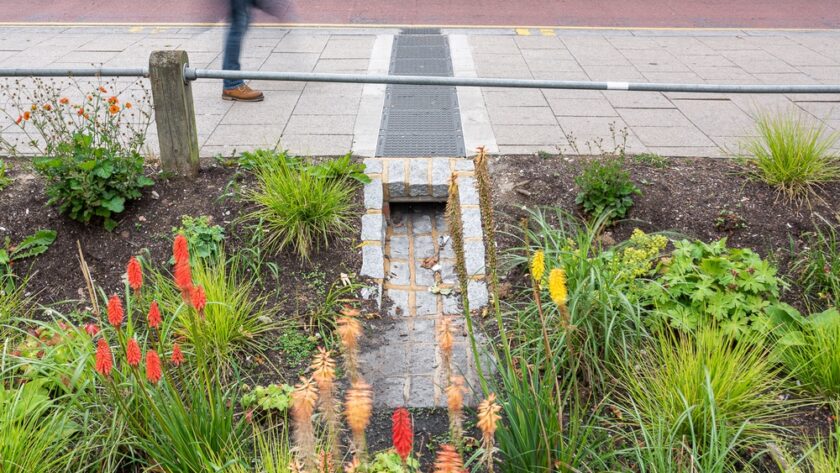 El resultado es un paisaje dinámico, en el que la ausencia de automóviles proporciona una valiosa ruta segura hacia la escuela; permite nuevos eventos comunitarios y fomenta el juego, al tiempo que recolecta, trata y almacena el agua de lluvia para reducir las inundaciones y la contaminación de los ríos. Eso es un jardín de lluvia, un proyecto de drenaje sostenible con gran valor social y medioambiental.
