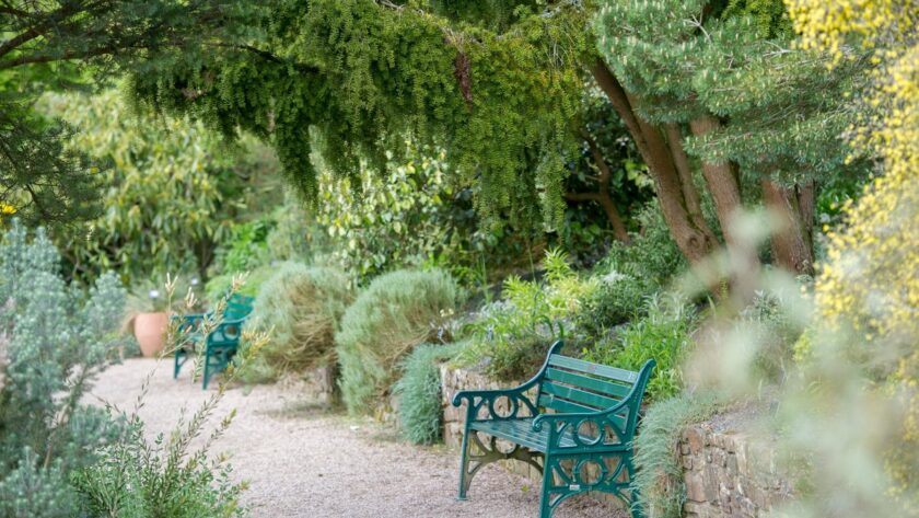 Cipreses mediterráneos (Cupressus sempervirens) y terreno rocoso salpicado de tenues hierbas. Follaje gris plateado de plantas aromáticas dispersas por sederos de grava y macetas de terracota creando puntos focales. Estamos en Devon, Reino Unido, pero eso no nos impide apreciar un modelo de jardín mediterráneo diseñado en uno de los jardines botánicos de la Sociedad de Horticultura británica (RHS). Me refiero a RHS Garden Rosemoor.