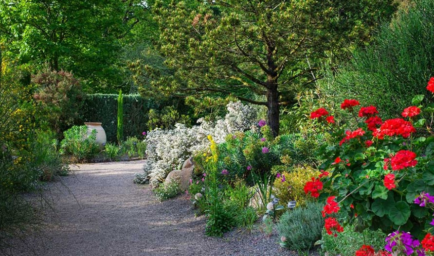 Todo un escenario que permite, especialmente si el tiempo es soleado ese día, que el visitante pasee entre camas y senderos cubiertos de gravilla, creyendo que se encuentra en un jardín situado en algún rincón del Mediterráneo. No hay laderas, pero sí cipreses, genistas, jaras, lavandas y más colores y aromas mediterráneos.