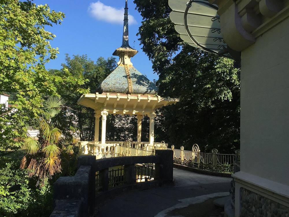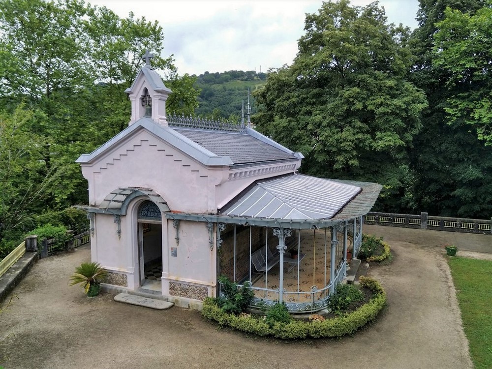 Reformaron la Casa-Palacio –una edificación en el estilo tradicional de la zona que data de 1847– e incorporaron las pequeñas construcciones de estilo modernista que le dan al jardín su carácter romántico. Así, en el jardín encontramos una capilla modernista con su pérgola y, a solo unos pasos de la capilla, también en estilo modernista, la espectacular torre mirador, una estructura inspirada en las pagodas japonesas, construida sobre un elemento esencial del jardín: el río Bidasoa.