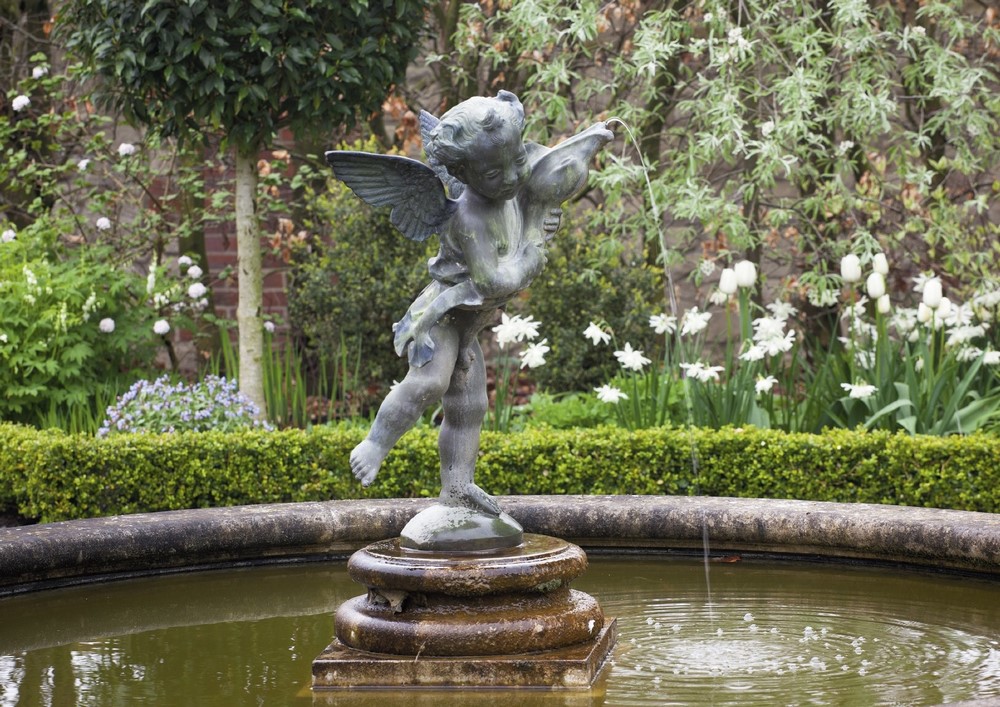 El jardín incluye desde 4.000 m2 de camas formales y estanques, hasta prados de flores que ofrecen refugio a la fauna silvestre y un impresionante jardín de invierno. La topiariay las rosas se mezclan, mientras que el agua que fluye por las diez pequeñas cascadas invita a la calma y la tranquilidad. No falta un atractivo estanque, un invernadero para las plantas más sensibles y un cobertizo lleno de herramientas y accesorios de jardín.