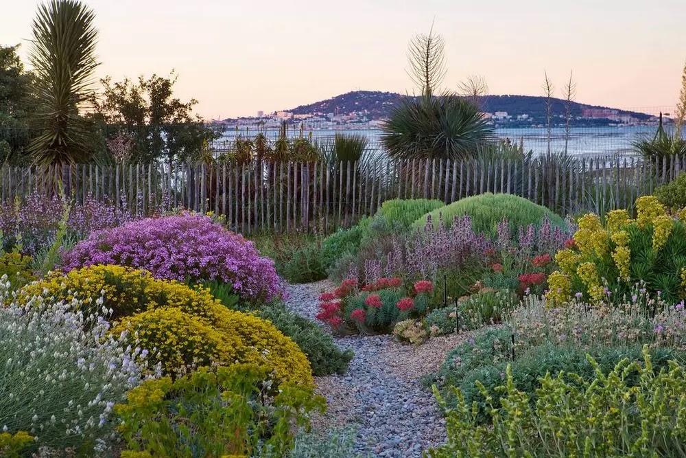 | Plantas tolerantes a la sequía en el jardín sin riego experimental de Clara y Olivier Filippi en Meze, Francia | Foto © Pépinière Filippi |
