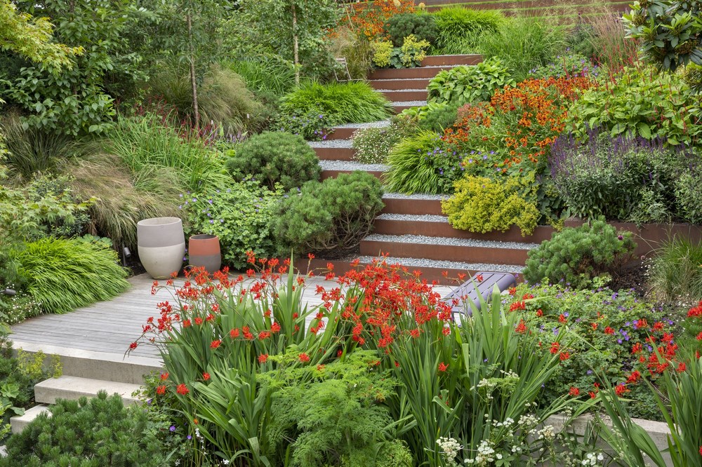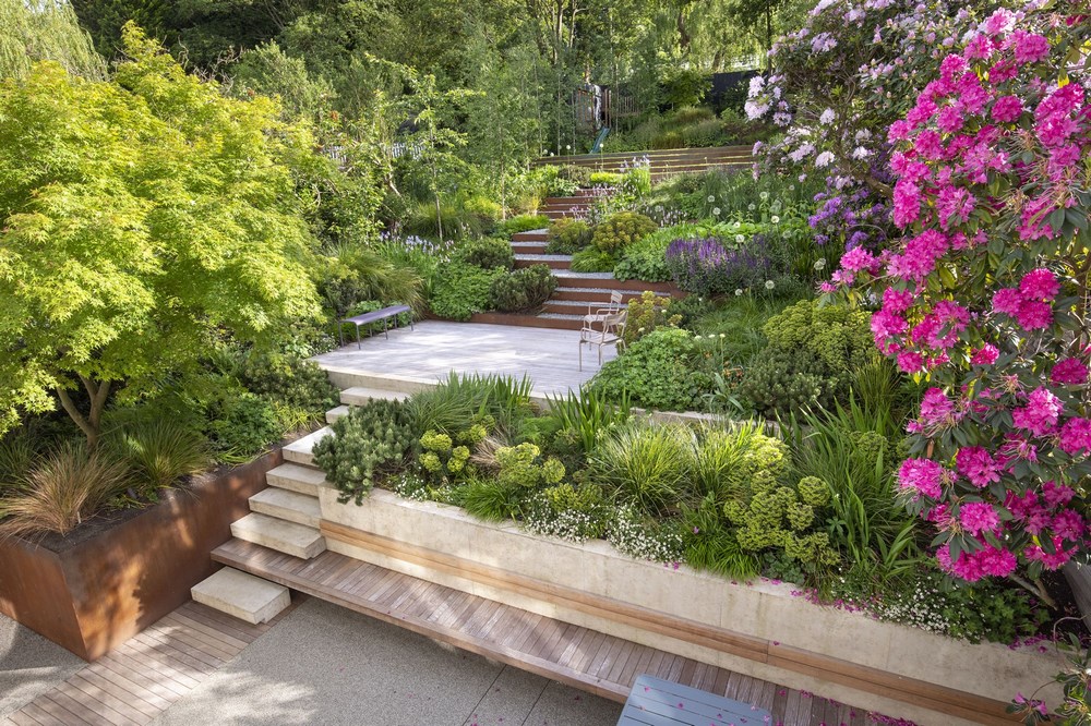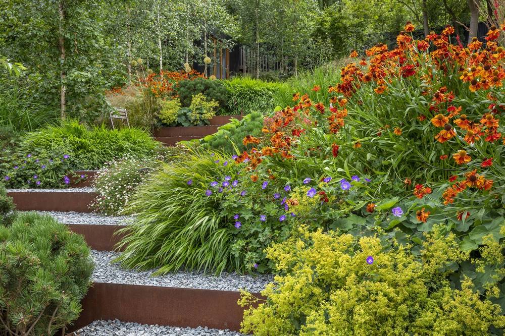 Crear un jardín familiar en una pendiente pronunciada