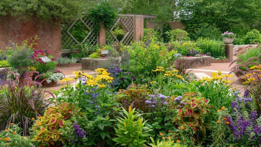 Caminos llanos y anchos, mesas de cultivo elevadas, cestas colgantes que pueden ajustarse sin dificultad a distintas alturas, son algunas de las medidas adoptadas en este jardín diseñado para que personas con diferentes necesidades puedan practicar horticultura terapéutica sin obstáculos.