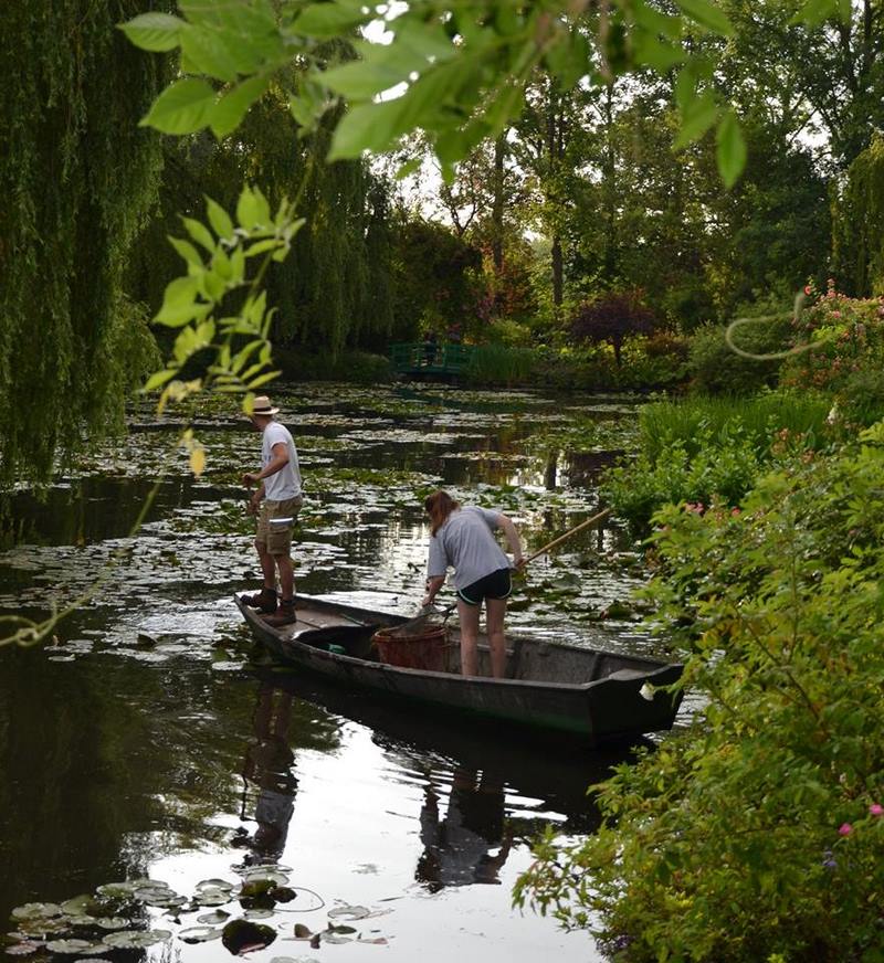 | Jardineros y voluntarios limpiando el estanque •• Foto Claude Monet Fundation |