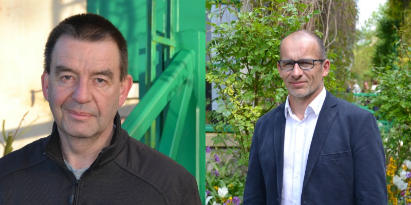| Izquierda, Jean-Marie Avisard (jardinero jefe) •• Derecha, Rémi Lecoutre, asistente •• Foto Claude Monet Fundation |